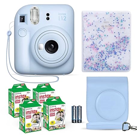 Thông tin sản phẩm Fujifilm Instax Mini 12 Instant Camera Pastel Blue + Fuji Film Value Pack (40 Sheets) + Shutter Accessories Bundle, Incl. Compatible Carrying Case, Quicksand Beads Photo Album 64 Pockets