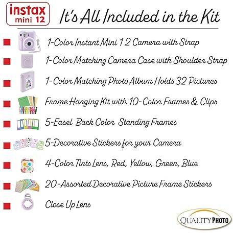 Thông tin sản phẩm Fujifilm Instax Mini 12 Instant Camera with Case, Decoration Stickers, Frames, Photo Album and More Accessory kit (Lilac Purple)…