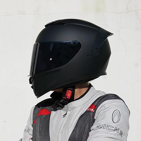 Full Face Motorcycle Helmet,Helmets for Adults Motorcycle, MG611 Motorbike Racing Street Bike Helmets with Black Visor for Men Women,DOT Approved (Matte Black, L)