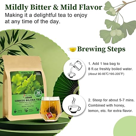 Sản phẩm FullChea Ginkgo Biloba Tea Bags, 36 Teabags - Premium Dried Ginkgo Biloba Leaves - Non-GMO - Caffeine-free - Support Memory & Focus đang được bán với giá ưu đãi là $10.8891 tại nước Mỹ.