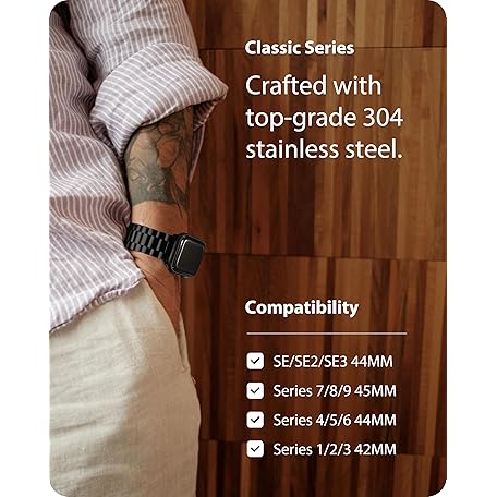Thông tin sản phẩm Fullmosa Band Compatible with Apple Watch 44mm 45mm 42mm, Stainless Steel iWatch Band for Apple Watch Se 2 Series 9/8/7/6/5/4/3/2/1(Black, 42mm/44mm/45mm)