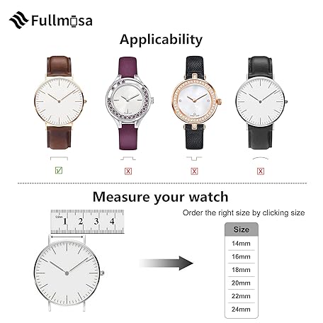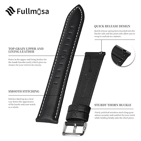 Thông tin sản phẩm Fullmosa Watch Band, Quick Release Leather Watch Strap for Men Women, Replacement Bands Width 14mm 16mm 18mm 19mm 20mm 21mm 22mm 24mm