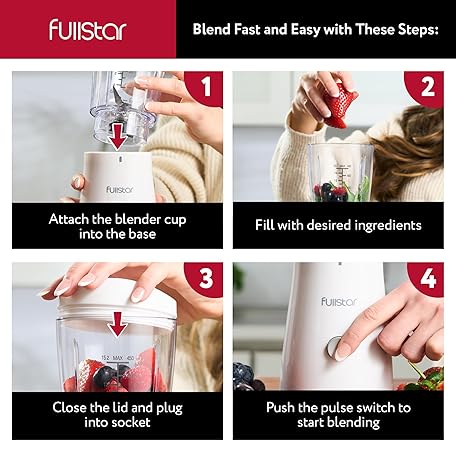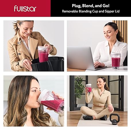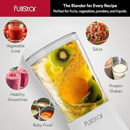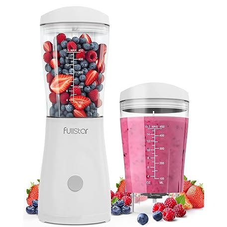 Thông tin sản phẩm Fullstar Portable Blender for Smoothies and Shakes – 15 oz Mini Personal Travel Blender with Sipper Lid, Compact Smoothie Maker for Office, Home, and Kitchen (White)