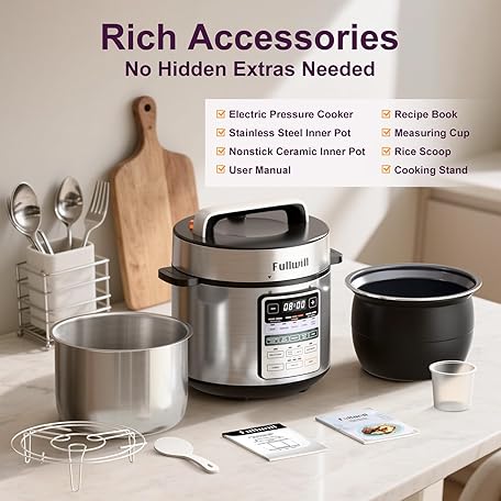 Fullwill Dual-Pot Electric Pressure Cooker 6+5QT(2025 Upgraded), 12-in-1 Multi-Cooker for Pressure Cooking, Soup, Yogurt, Stew, Rice
