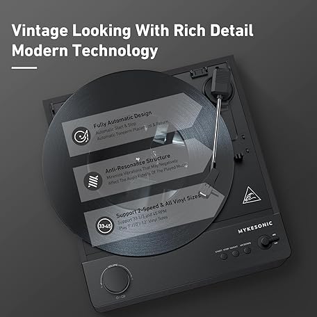 Thương hiệu MYKESONIC là cái tên nổi tiếng được rất nhiều khách hàng trên thế giới chọn lựa. Với kiểu dáng đẹp mắt, sang trọng, sản phẩm Fully Automatic Record Player, Bluetooth Belt Drive Vinyl Turntable, Magnetic AT-3600L Cartridge, Bluetooth in & Out, Hi-Fi Stereo Speakers, Aux in Headphone, RCA Out, Anti-Resonance - Black là sự lựa chọn hoàn hảo nếu bạn đang tìm mua một món cho riêng mình.