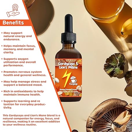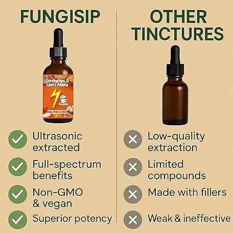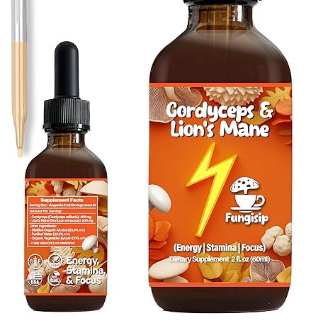 • FUNGISIP Cordyceps & Lion’s Mane Tincture – Organic Energy & Focus Support – Ultra-Potent Alcohol-Based Liquid Extract – 2 oz