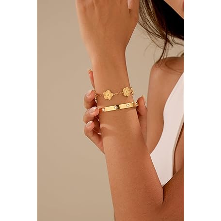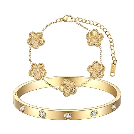 Sản phẩm FUNIO 18K Gold Plated Clover Bracelet Love bangle Set for Women - Stack Friendship Bracelet Lucky Link Bracelets Jewelry Gifts Trendy for Women đang được bán với giá ưu đãi là $17.4182 tại nước Mỹ.