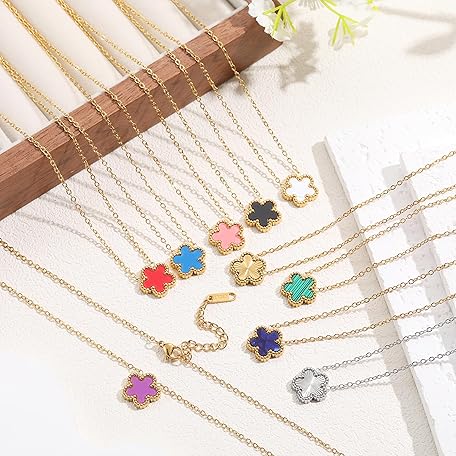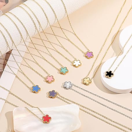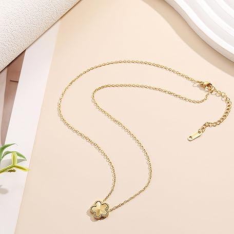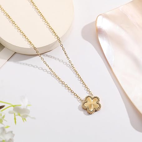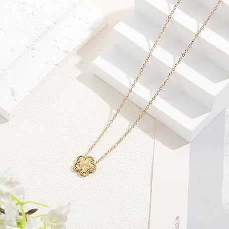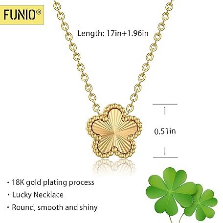FUNIO 18K Gold Plated Clover Necklace for Women, Four Leaf Flower Lucky 4 Leaf Necklace Pendant Dainty Jewelry Gift for Women