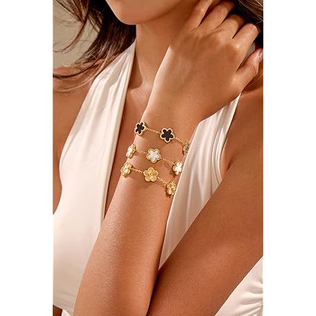 Sản phẩm FUNIO Four Leaf Clover Bracelet Set for Women - 3Pcs 18K Gold Plated Flower Lucky 4 Leaf Link Bracelet Jewelry Gift for Women Van Cleef đang được bán với giá ưu đãi là $17.4182 tại nước Mỹ.
