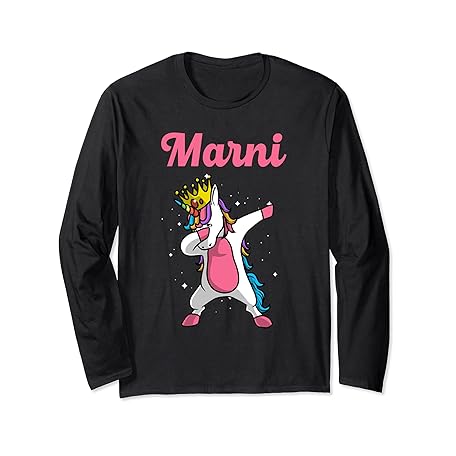 Funny Custom Christmas Girl Mother Women Mom Gifts MARNI Name Personalized Birthday Dabbing Unicorn Queen Long Sleeve T-Shirt