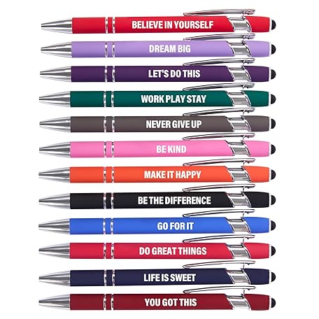 Thông tin sản phẩm Funny Pens - 12 Pack Fine Point Smooth Writing Pens with Inspirational Tips, Black Ink, Touch Stylus Screens, Motivational Gift for Office & Desk Accessories