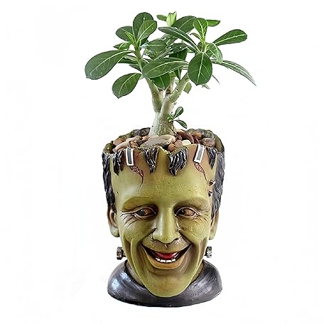 Funny Planter Head Planter Succulent Pot with Drainage Hole Fairy Garden Resin Cactus Plant Pot Pencil Holder Desk Storage Gift for Women Men(Frankstein)