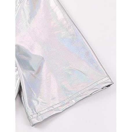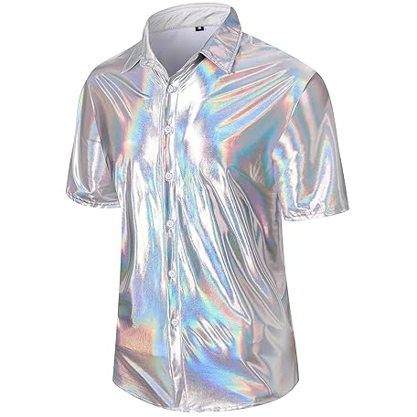 Funny World Mens 70s Disco Outfits Metallic Short Sleeve Sparkling Button up Sequin Shirts, Silver