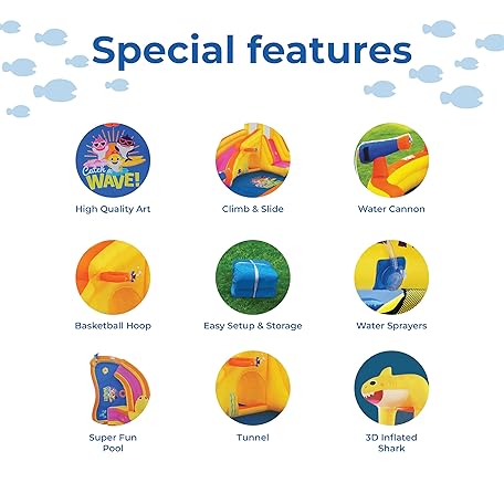 Funormous Baby Shark Bounce House with Slide Wet or Dry, Pink Fong Inflatable Water Slide, Party Outdoor Curve Waterslide Fun, Kids Backyard Water Park, Includes Water Sprayer, Pool & Blower