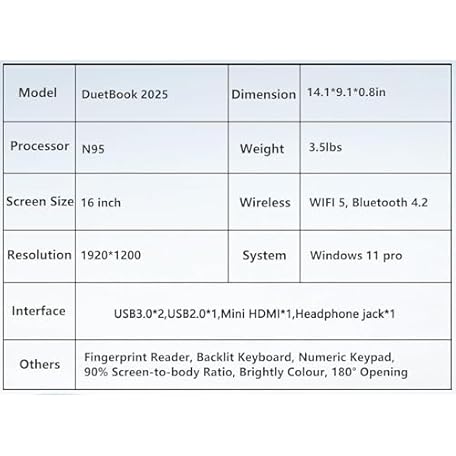 Thông tin sản phẩm FUNYET Laptop Computer, Gaming Laptop 2025 Windows 11 Pro, 16 Inch Lap Top PC, 16GB RAM 512GB SSD, Intel 12th Gen N95 Processor(up to 3.4GHz), Backlit Keyboard, Fingerprint Unlock, FHD 1920 * 1200