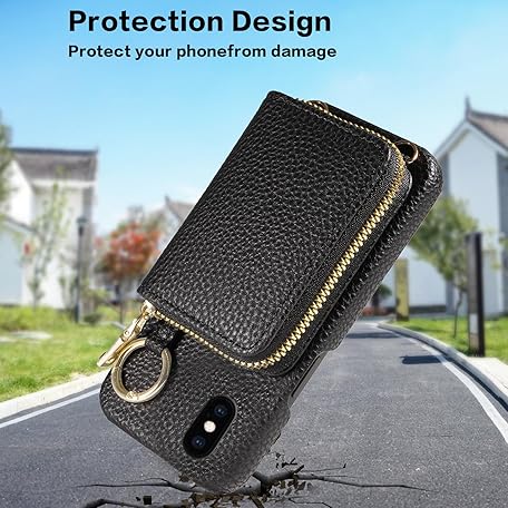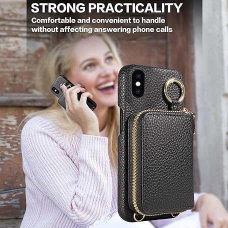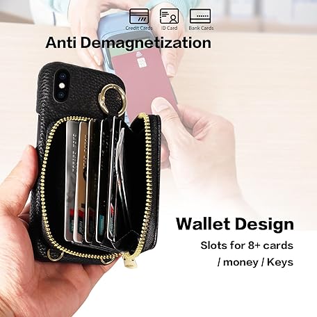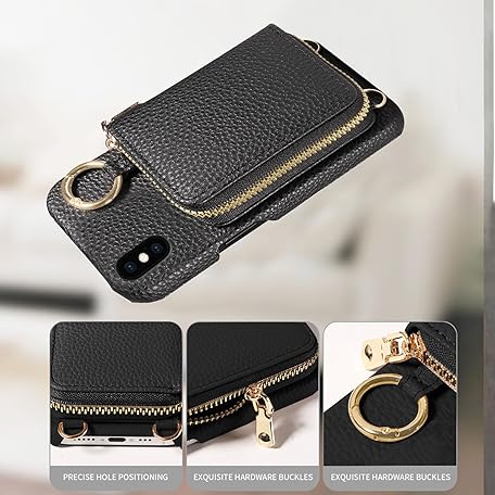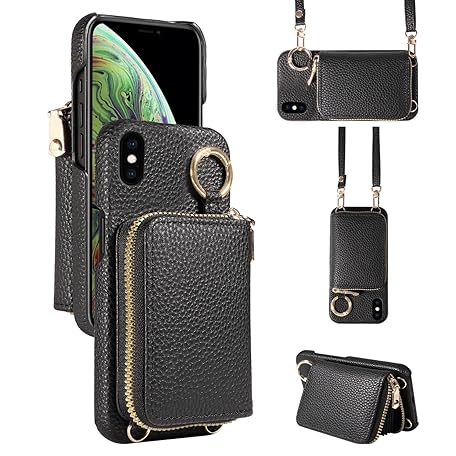 Furiet Wallet Case for iPhone Xs X 10 10s with Shoulder Strap Ring Buckle Zipper Flip Organ Purse Credit Card Holder Stand Cell Phone Cover for iPhoneX iPhoneXs iPhone10 i PhoneX SX 10x 10xs X’s Black