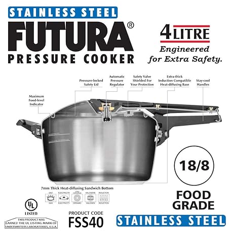 Sản phẩm Futura Stainless Steel 4L Pressure Cooker Induction Compatible đang được bán với giá ưu đãi là $110.4715 tại nước Mỹ.