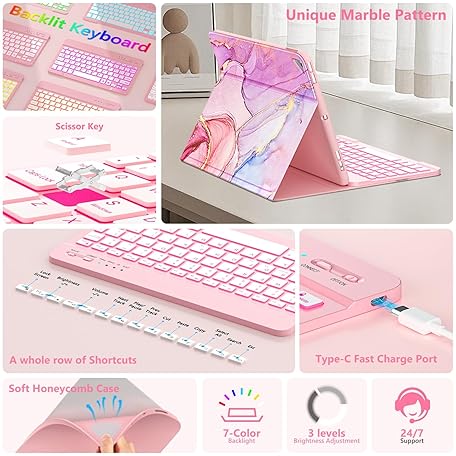 Thông tin sản phẩm FUWANG Keyboard Case for iPad 9th 8th 7th Generation 10.2 inch, Detachable 7 Colors Backlit for iPad 9th Generation Case with Keyboard, Keyboard Cover for iPad Pro 10.5"/Air 3rd Gen with Pencil Holder