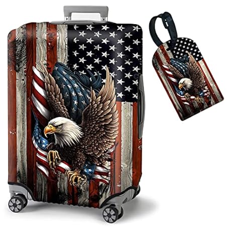 Sản phẩm FUYOCWE Luggage Covers for Suitcase TSA Approved,Elastic Washable Suitcase Cover Protector Sleeve Wrap for 22-25 Inches Luggage Travel Accessories-Bald Eagle with Flag đang được bán với giá ưu đãi là $25.0591 tại nước Mỹ.