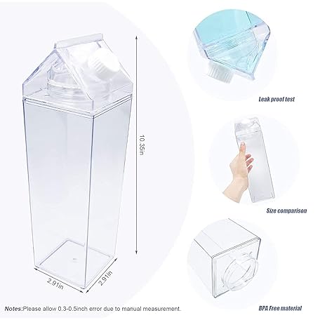Sản phẩm FveBzem Milk Carton Water Bottle 33oz (1000mL) Plastic Square Milk Bottles No BPA Leakproof Water Bottle Portable Reusable Milk Carton Shaped Juice Bottle Perfect for Fitness Gym Camping Sports đang được bán với giá ưu đãi là $10.8782 tại nước Mỹ.