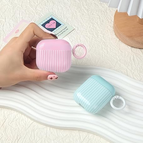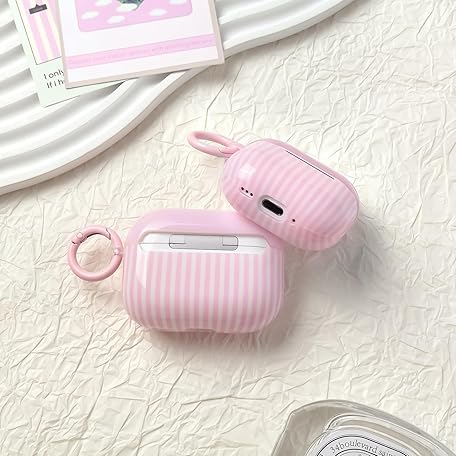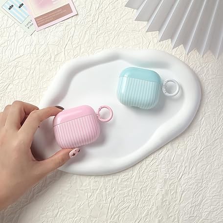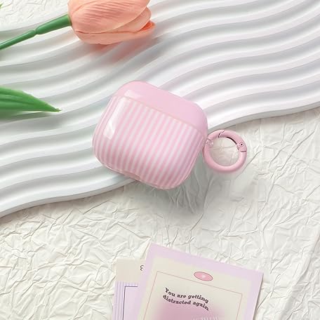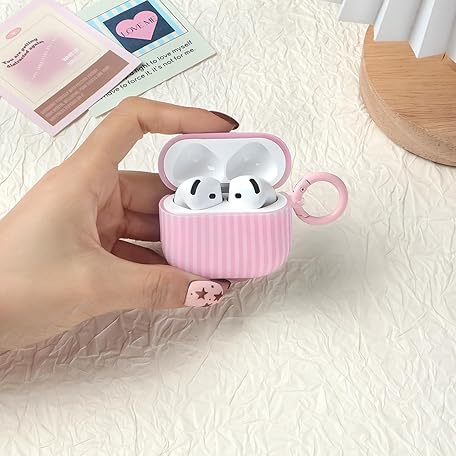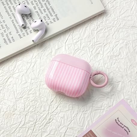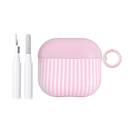 • Fycyko for AirPod 4th Generation Case Cute Striped Trendy Aesthetic Glossy Shockproof Protective Case for AirPod 4 with Cleaner Kit-Pink