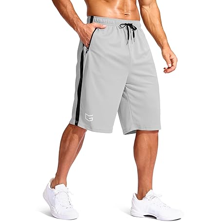 G Gradual Men's 11" Long Basketball Shorts with Zipper Pockets Drawstring Mesh Lightweight Gym Athletic Shorts for Men