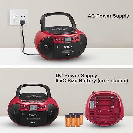Thông tin sản phẩm G Keni Portable CD and Cassette Player Boombox Combo, Casette Tape Recorder with Remote, AM FM Radio, USB Playback with Earphone Jack, 5.1V Bluetooth Speaker, Battery Operated/AC Powered for Home(Red)
