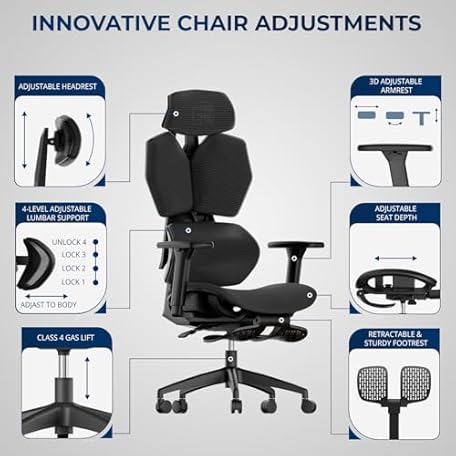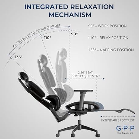 G-PACK PRO Mesh Office Chair – Ergonomic Office Chair with 4-Level Adjustable Lumbar Support, Headrest, 3D Armrest & Footrest – Holds Up to 290lbs (G-Howk-Pro -1)