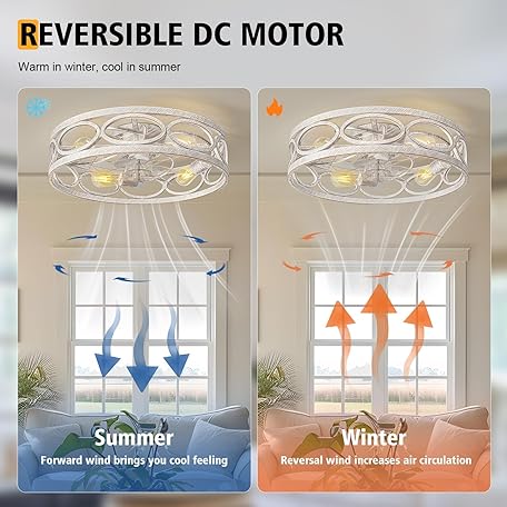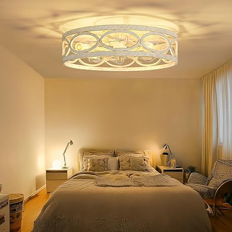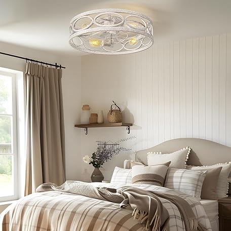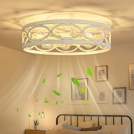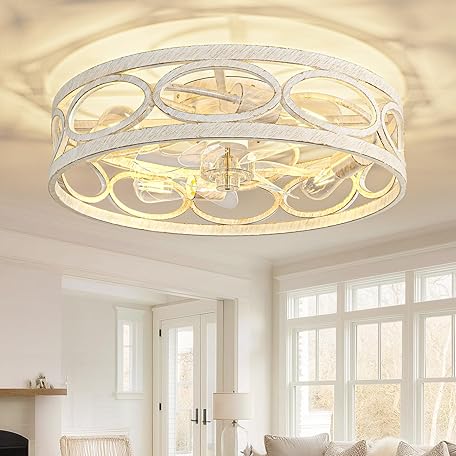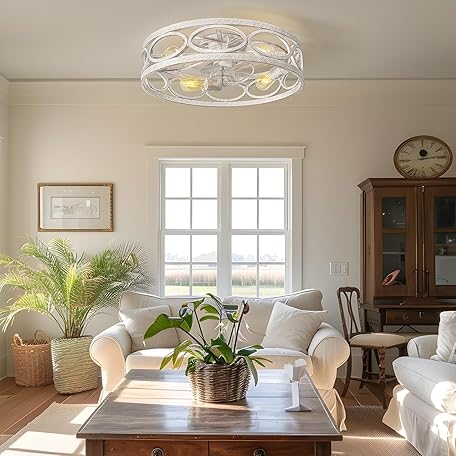 G-SAFAVA 20" Ceiling Fans with Lights and Remote, 6 Wind Speeds 3 Timing Quiet Flush Mount Low Profile Caged Ceiling Fan for Bedroom Living Room Kitchen, Farmhouse Small Reversible Ceiling Fan, White