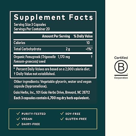 Sản phẩm Gaia Herbs Fenugreek Seed - Helps Support Healthy Lactation and Breast Milk Production* - Made with Organic Fenugreek Seeds - 60 Vegan Liquid Phyto-Capsules (Up to 15-Day Supply) đang được bán với giá ưu đãi là $32.3621 tại nước Mỹ.