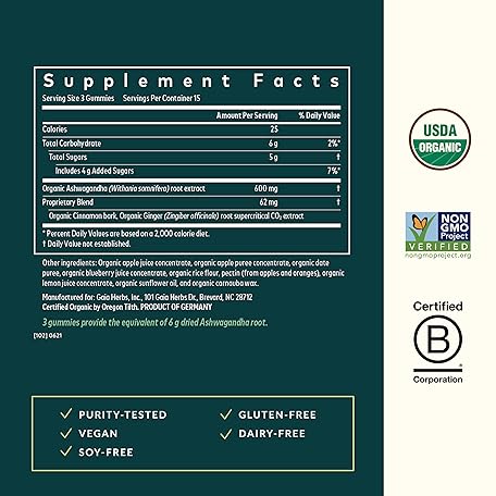 Sản phẩm Gaia Herbs Organic Ashwagandha Gummies - Stress Support* - Made with Cinnamon & Ginger - Gluten Free & Vegan - 45 Count (15-Day Supply) đang được bán với giá ưu đãi là $16.1756 tại nước Mỹ.