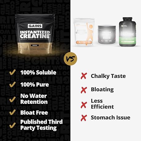 Gains in Bulk Instantized Creatine Monohydrate for Women and Men, Soluble Creatine Powder, Supports Muscle Building, Strength and Performance, Bodybuilding Supplements, Unflavored, 30 Servings