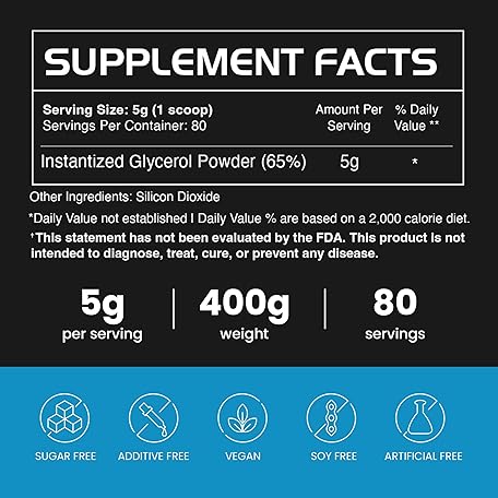 Gains in Bulk Instantized Glycerol Powder, Pre Workout Formula for Muscle Recovery, Pump and Hydration Support, Workout Supplement for Men and Women, Sugar Free, Non-Clumping, Unflavored, 80 Servings
