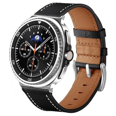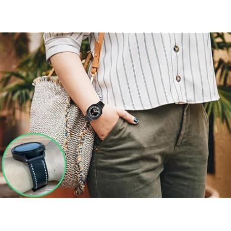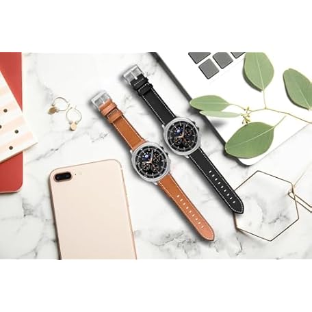 Thông tin sản phẩm Galaxy Watch 8 Classic Band 46mm, Bands for Samsung Galaxy Watch8 40mm/44m (2025), Business Leather Wristband Replacement Strap for Men Women, Black Silver