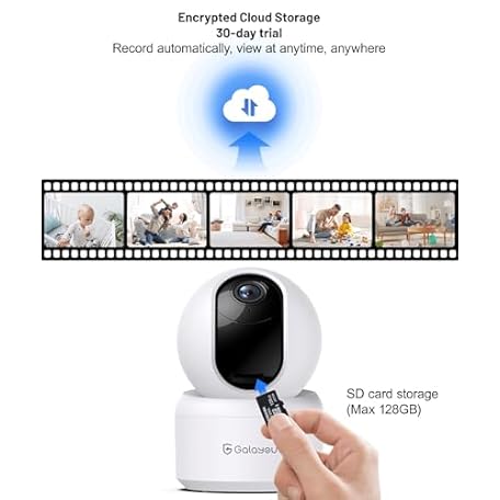 Thông tin sản phẩm GALAYOU Indoor Security Camera 2K, Pet Camera, 360 Degree 2.4G WiFi Home Security Camera for Baby/Elder/Nanny with Night Vision, 24/7 SD Card Storage, Works with Alexa and Google Assistant G2-2Pack