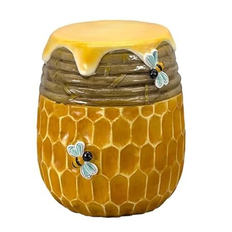 • Galt International Honeycomb Stool Side Table w/Bees & Honey Top 17" | Cute Fantasy Yellow Golden Honey Hive Basket Fun Eclectic Home Decor Resin