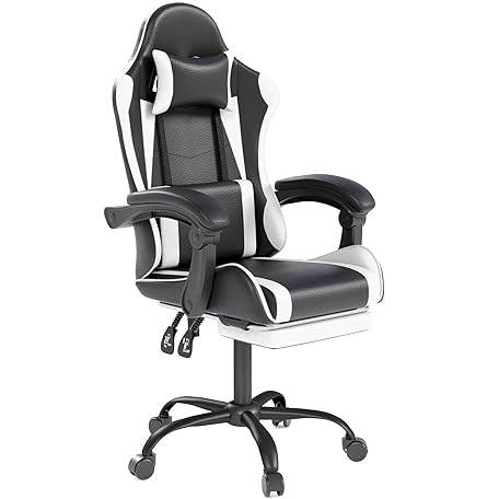 Gaming Chair with Headrest and Lumbar Support, Ergonomic High Back Office Chair, Racing Style Executive Computer Desk Chair, Leather Adjustable Swivel Task Chair for Home Office (White)