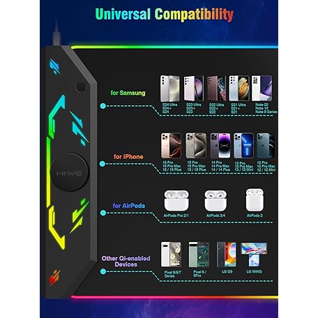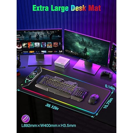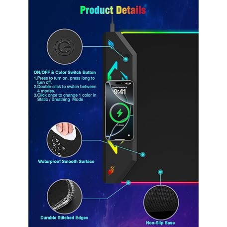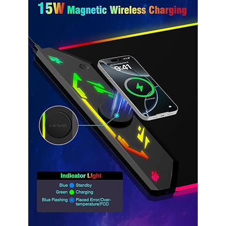 Gaming Mouse Pad RGB, 35"x15.8" Large Keyboard Desk Mat with Magnetic Wireless Charging for iPhone, 24 Light Effects, Non-Slip Base, Waterproof Ultra-Smooth Surface, with Adapter, Black