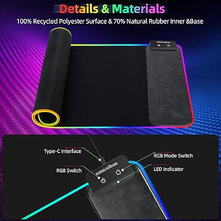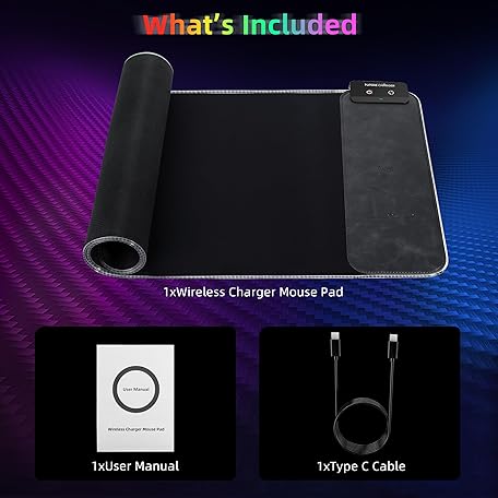 Thông tin sản phẩm Gaming Mouse Pad, Wireless Charging Mouse Pad Gaming, 31.5"x11.8" Large RGB Desk Mat for Laptop/Computer/Keyboard, 9 Light Modes, Waterproof Smooth Surface, Non-Slip Base, Black