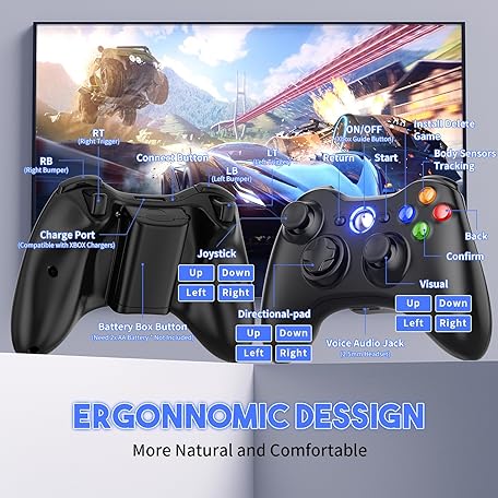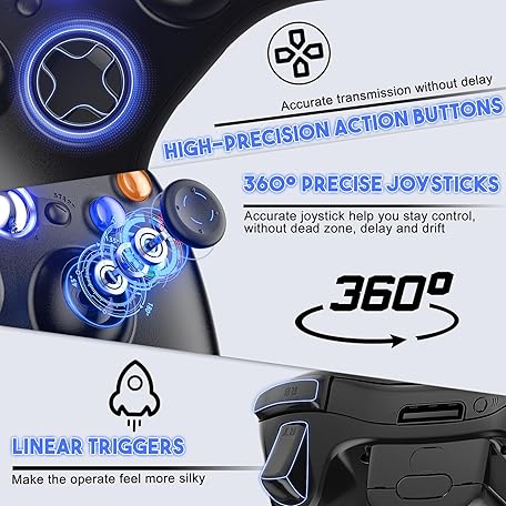 Thông tin sản phẩm Gamrombo 2 Pack Replacement for Xbox 360 Controller, Wireless Controllers Gamepad Upgraded Joystick Compatible with 360 & Slim, Windows 11/10/8/7 PC Controller