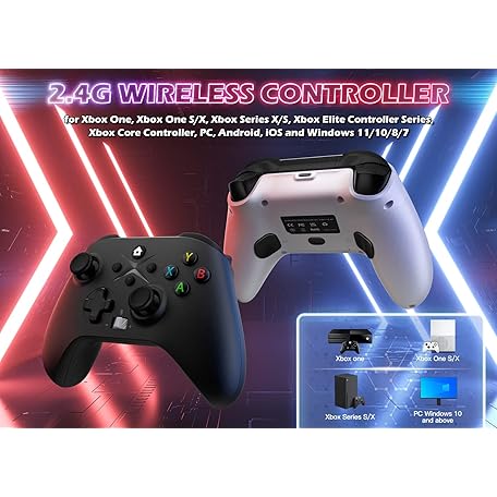 Gamrombo 2 Pack Wireless Controller Replacement for X-box One, X-box Series X|S Controller with Audio Jack & Volume Button/Turbo/Macro/Dual Shock, with 2.4GHz Adapter Black+White - Need to Upgrade