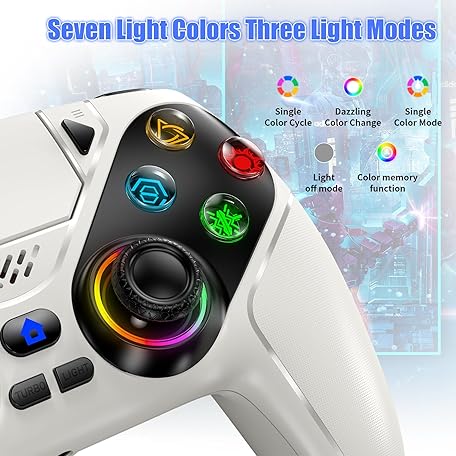 Thông tin sản phẩm Gamrombo LED Wireless Controller for PS5, Compatible with PS5 Pro/Slim/PC, Dual Vibration, Macro/Turbo Function, 3.5mm Audio Jack, 6-Axis Motion Contro Gamepad with Speaker(White)