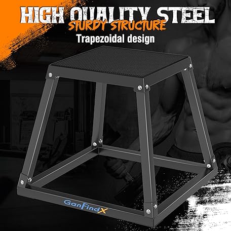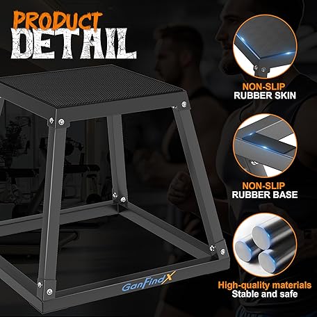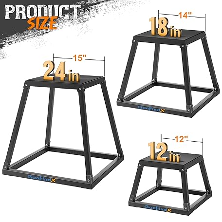 GanFindX Plyometric Jump Box Set, 12/18/24 Inch Steel Plyo Box, Heavy Duty Plyometric Platform with Anti-Slip Surface for Home Gym Training, Step-Up, Agility and Strength Conditioning