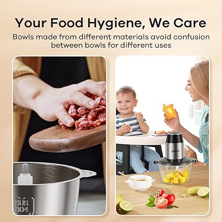 Thông tin sản phẩm GANIZA Food Processors, Electric Food Chopper with Meat Grinder & Vegetable Chopper - 2 Bowls (8 Cup+8 Cup) with Powerful 450W Copper Motor - Includes 2 Sets of Bi-Level Blades for Fruits/Meat/Nuts