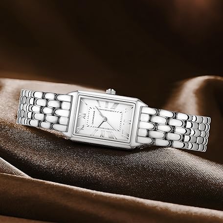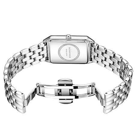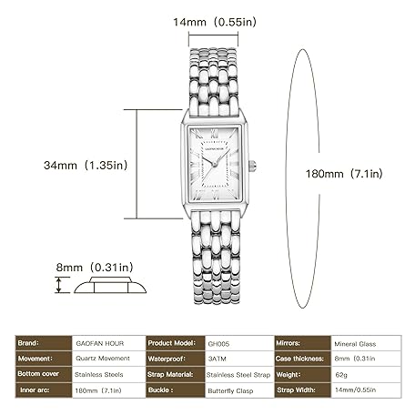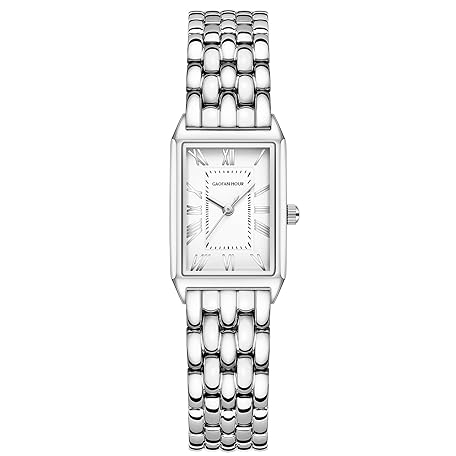 Thông tin sản phẩm GAOFAN HOUR Gold Watches for Women with Vintage Rectangular Case,White Roman Dial,Stainless Steel Band,Adjustment Tool Included,Water Resistant