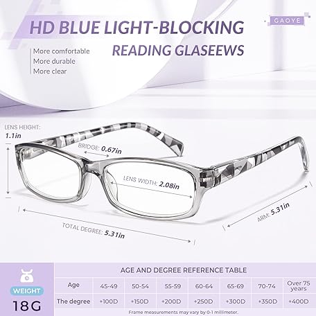 Thông tin sản phẩm Gaoye 2.5 Reading Glasses for Women, 6 pack Fashion Readers for Women Spring Hinge Eye Glasses, Blue Light Reading Glasses