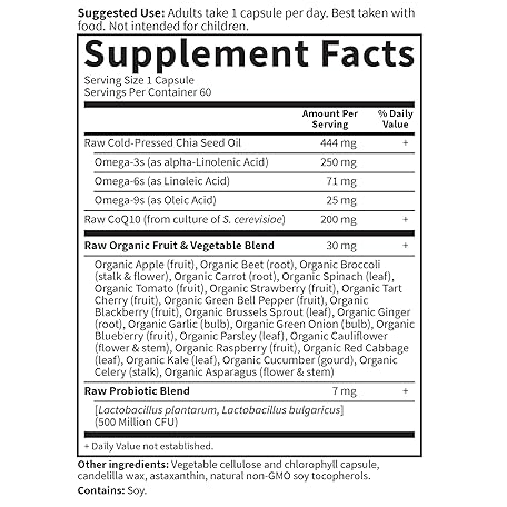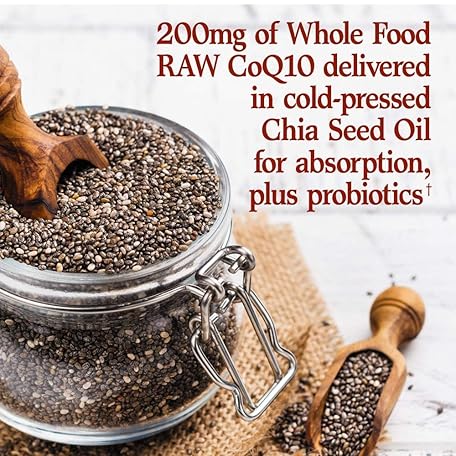 Thông tin sản phẩm Garden of Life CoQ10 200mg, Vegetarian Omega 3 6 9 Supplement Raw Co Q 10 Chia Seed Oil, Whole Food Nutrition with Antioxidant Support, Coenzyme q10 Supplement for Heart Health, 60 Capsules