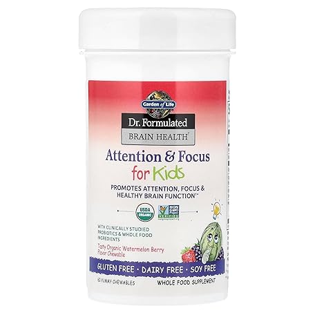 Thông tin sản phẩm Garden of Life Dr. Formulated Attention and Focus for Kids, Supplement Promotes Healthy Brain Function, Concentration with Organic Wild Blueberry, Pine Bark, Vitamin C, D and Probiotics, 60 Count
