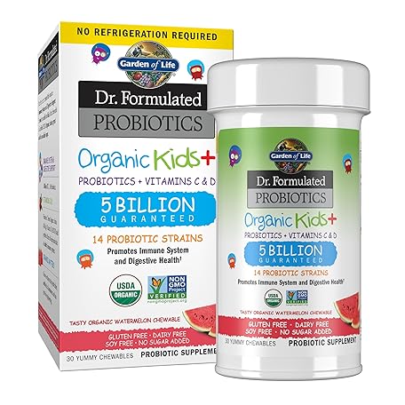 Thông tin sản phẩm Garden of Life Dr. Formulated Probiotics Organic Kids+ plus Vitamin C & D - Watermelon - Gluten, Dairy & Soy Free Immune & Digestive Health Supplement, No Added Sugar, 30 Chewables (Shelf Stable)
