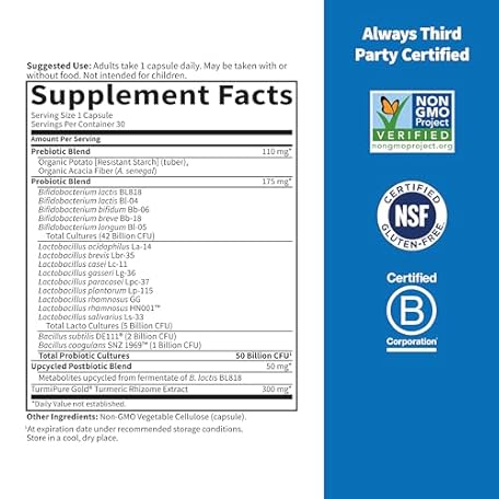 Thông tin sản phẩm Garden of Life Dr Formulated Sport Probiotics Digestive Supplement, Organic Prebiotics for Women & Men Athletes, Clinically Studied Turmeric Curcumin, 50 Billion CFU, Gut Health, Acidophilus, 30ct